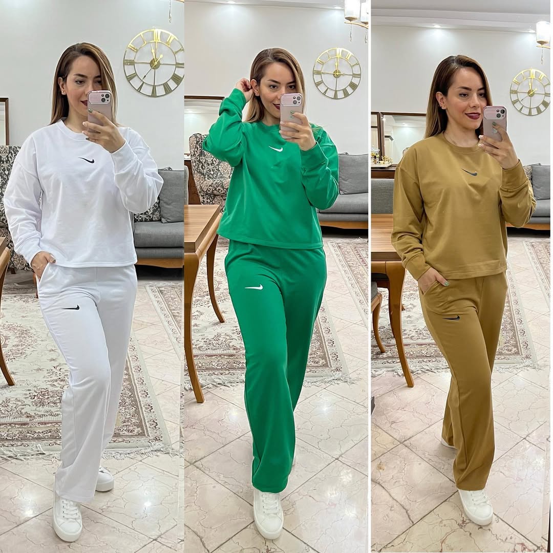 متاسفانه این کالا در حال حاضر موجود نیست. میتوانید از طریق لیست بالای صفحه، از محصولات مشابه این کالا دیدن نمایید.این ست بلوز و شلوار نایک بسیار زیبا بوده و برای مسافرت مناسب است. بلوز با عرض ٦٠ و قد ٥٥ و شلوار با قد ١٠٠ و دور ران ٦٠ طراحی شده است. رنگهای موجود شامل مشکی، سفید، سبز، کرم و شتری است. جنس آن دورس سه نخ است.